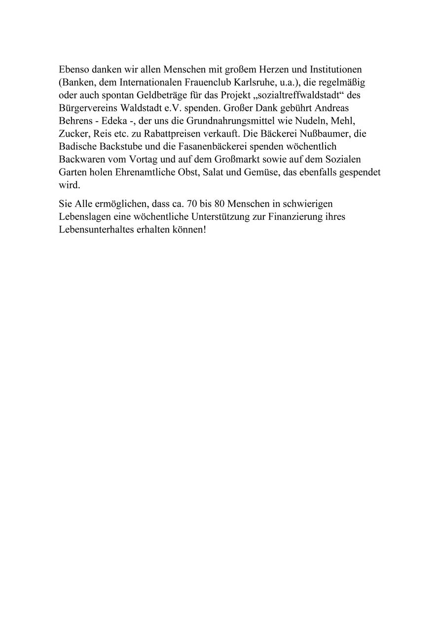 Das „sozialtreffwaldstadt“ des Bürgervereins Waldstadt e.V. bedankt sich recht herzlich bei folgenden Sponsoren für die finanzielle und sachliche Unterstützung: